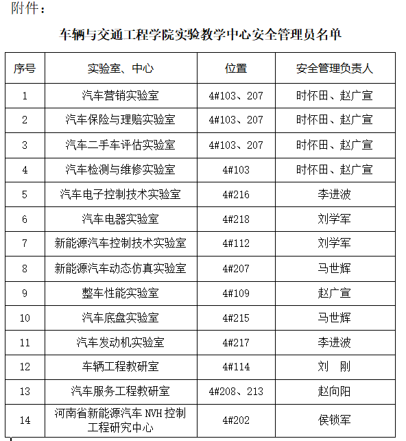 附件:车辆与交通工程学院实验教学中心安全管理员名单