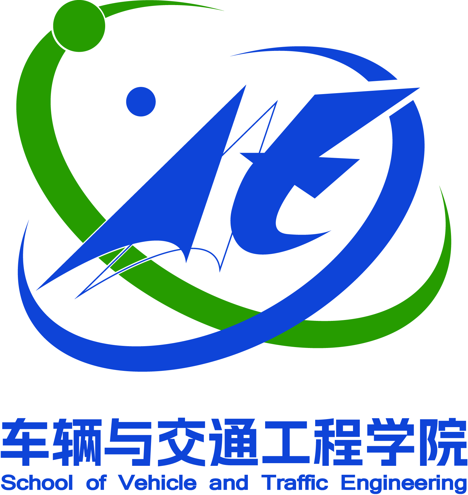 车辆与交通工程学院的标志由英文“School of Vehicle and Traffic Engineering”提取英文首字母"SVTE" 进行设计,标志以两个交错的“半圆环”为造型基础,对其内部进行优化创新,强化视觉张力,彰显速度与力量。标志由绿、蓝为主题色,代表节能环保和便捷迅速。整个标志外围利用交织的星环组成首字母S,宛如浩瀚的宇宙深邃、永恒。标志的视觉中心将字母VTE进行变形,左半部分V字母顶端朝上形成飞行的姿态,代表学院发展迅速定位精准,右半部分由字母TE组合形成大鹏展翅,代表学院敢于突破勇于创新。多元素的融合使得整体标志更具有力量感和科技感。