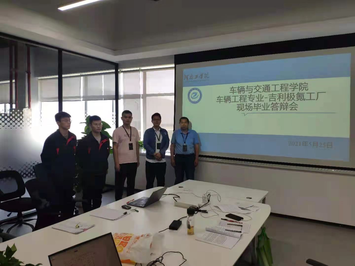 2021年5月25日—2021年5月26日,车辆与交通工程学院派娄云教授、金毅教师、徐文博教师赴宁波市杭州湾新区吉利极氪工厂,为在这家企业进行实习的2021届郭浩明等12名学生进行本科毕业设计答辩。