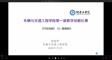 为贯彻落实“新时代全省高等学校本科教育工作会议”精神和校工会《关于组织推荐教师参加2020年度全省教育系统教学技能竞赛活动的通知》的要求,车辆与交通工程学院于7月6日上午举办了第一届教师教学创新比赛。