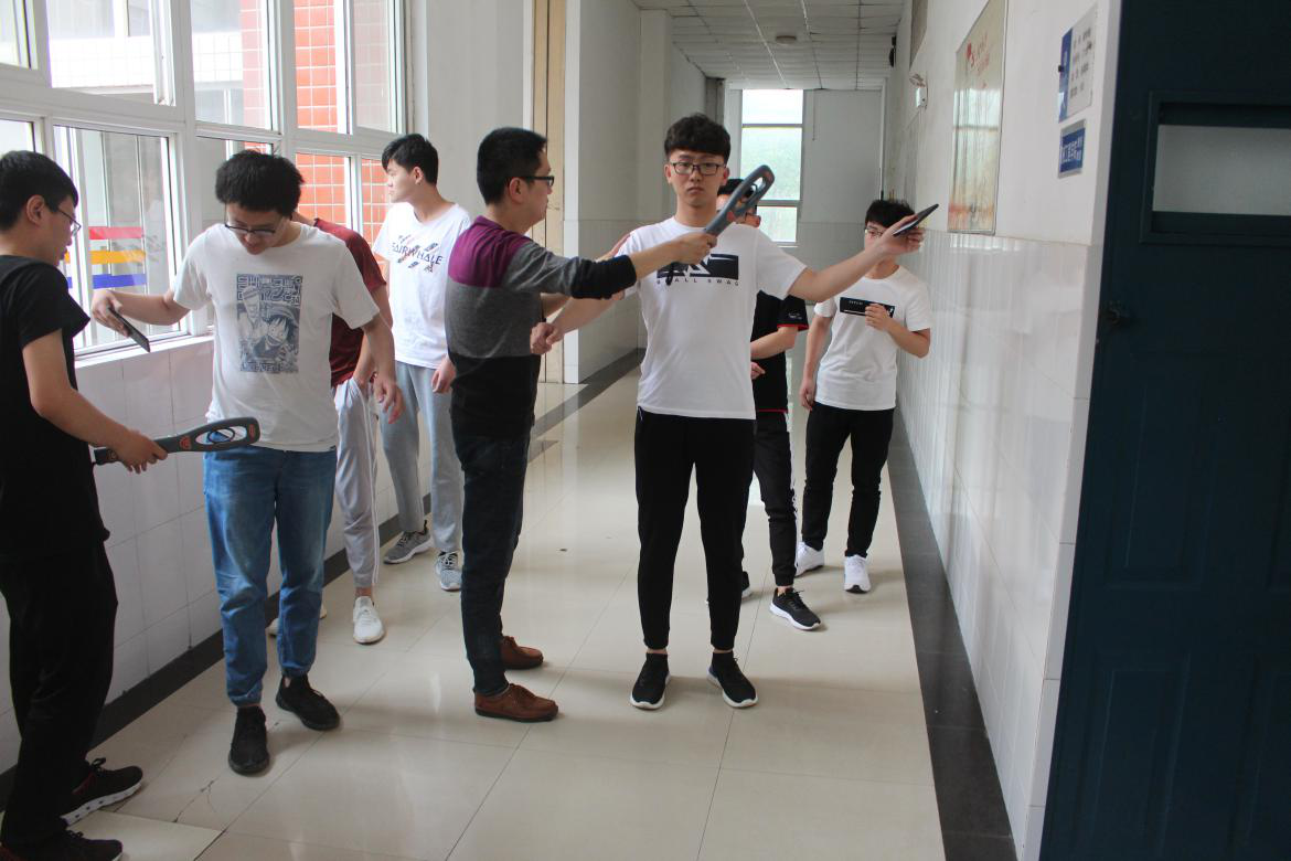 下午2点,张虎在公教楼C106等候学生到来。学生到来后,张虎自为学生进行无声入场演练。本次演练组织有序,按照报考名单顺序,模拟监考员按照操作规范用金属探测仪对考生进行检查,检查时按照从身体正面至背面,从上到下的顺序,对考生头部(双耳)、躯干、四肢、腋下、腰部、脚部,特别是耳、口部位和鞋底等进行全面细致的检查。