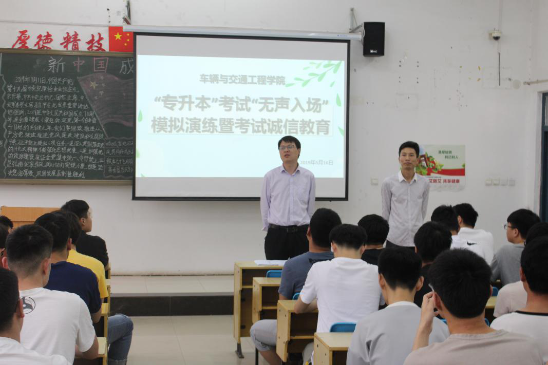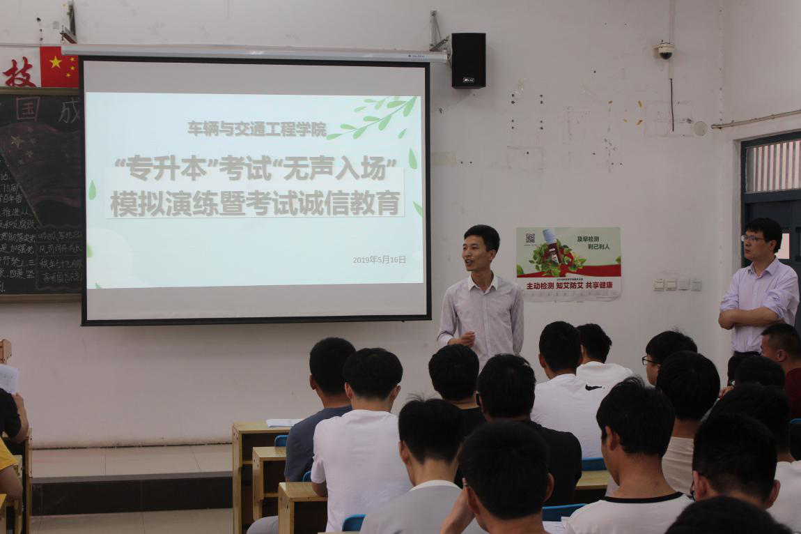 2019年5月16日,我院组织参加2019年专升本考试的155名考生进行了专升本考试“无声入场”模拟演练。车辆学院副院长侯锁军,党总支副书记郑峰、2016级辅导员张虎,主持了“无声考场”模拟演练。