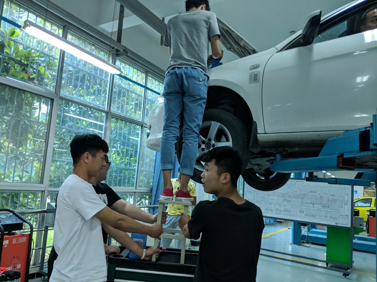 汽车工程系学生在4S店技术人员指导下走向汽车维修检测第一线
