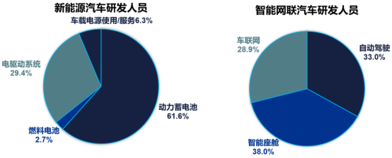新能源汽车行业和智能网联汽车行业研发人员岗位分布