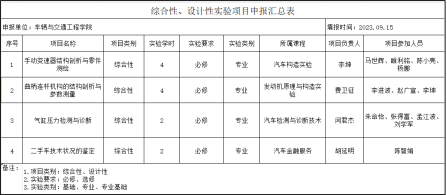 为进一步深化实验教学改革,提高实验教学质量,同时增强学生综合分析能力、实验动手能力、设计实验能力、数据处理及资料查询能力等。车辆与交通工程学院各位实验老师积极申报综合性、设计性试验项目。9月14日上午,我院在教4楼211召开综合性、设计性试验项目立项评审会议。会议由车辆与交通工程学院副院长赵向阳主持,学院教学工作指导委员会全体成员参加。