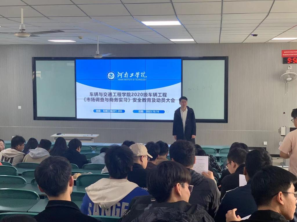 为了扎实做好2020级本科生实习工作,促进学生对所学知识和技能的实践运用、总结和深化,引导学生明确认识实习的目的和意义。10月16日上午,车辆与交通工程学院在教1楼举行了2020级车辆工程《市场调查与商务实习》安全教育及动员大会。车辆工程教研室实习指导教师及车辆工程专业2020级113名本科生参加,会议由车辆工程教研室教师乔林炎主持。