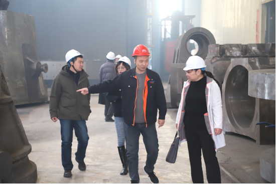在企业相关负责人的陪同下,陈新亚院长一行深入生产一线,实地参观了腾飞机械制造有限公司的各个核心车间。从前沿的数据模型模拟、模型制作,到关键的地坑造型、钢水冶炼、精密材质检测,再到后续的浇筑、铸件清理、热处理以及精整等全流程工序,调研团队通过与现场技术人员的交流,对公司的生产工艺、质量管控体系以及技术改造需求有了更为直观和深刻的认识。