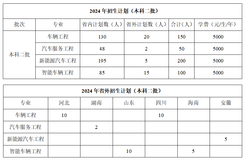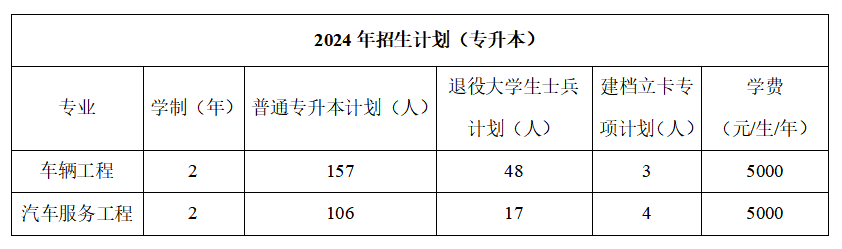 2024年车辆学院招生计划及往年录取分数线