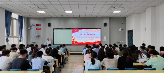 为深入学习贯彻党的二十大精神,推动习近平新时代中国特色社会主义思想主题教育走深走实,4月27日下午,副校长戚新波在教学一号楼B106教室为我院师生宣讲党的二十大精神。会议由院党委书记魏然主持。