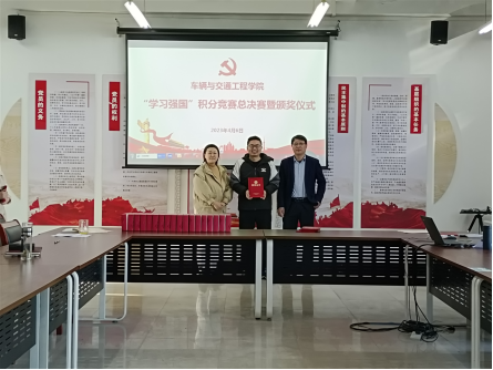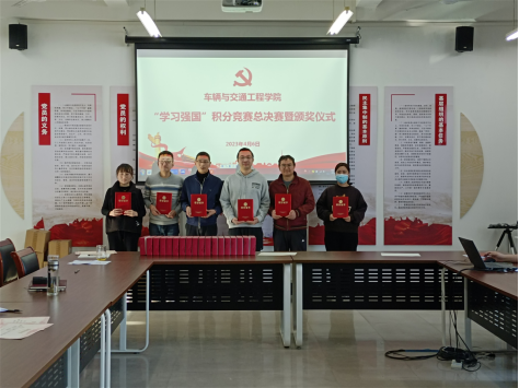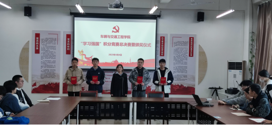 为深入贯彻落实党的二十大精神,认真学习习近平新时代中国特色社会主义思想,进一步激发广大党员学习奋发向上的热情,车辆与交通学院党委从3月1日到21日举行了为期21天的“学习强国”学习积分竞赛活动,此次活动分为教师组和学生组两组,各选出“学习标兵”10人,“优秀学员”5人,优秀学习党支部1个,分别于4月4日和4月6日举行一、二、三等奖决赛及颁奖仪式。