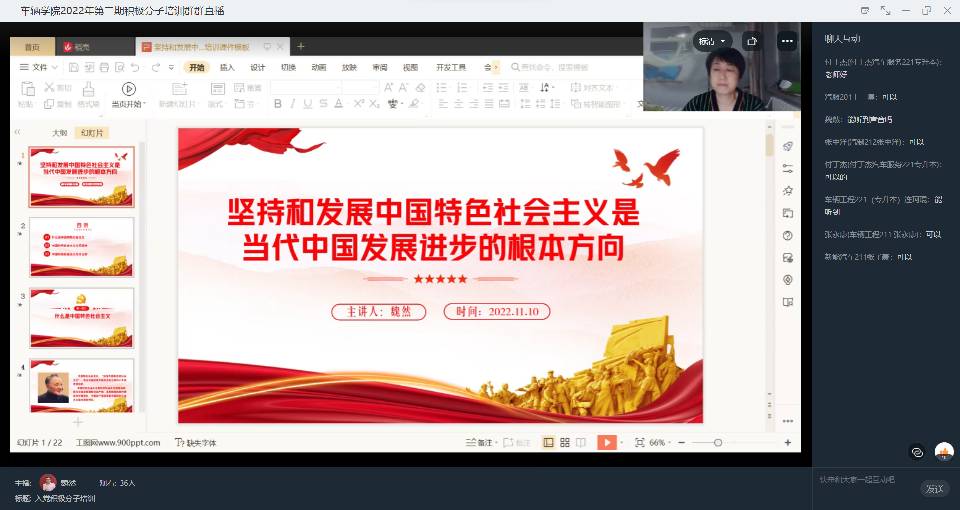 为进一步加强入党积极分子的培养教育,提高政治素质和理论水平,我院于11月3日,举办2022年第二期入党积极分子培训班,我院入党积极分子共计42人参加了培训班。