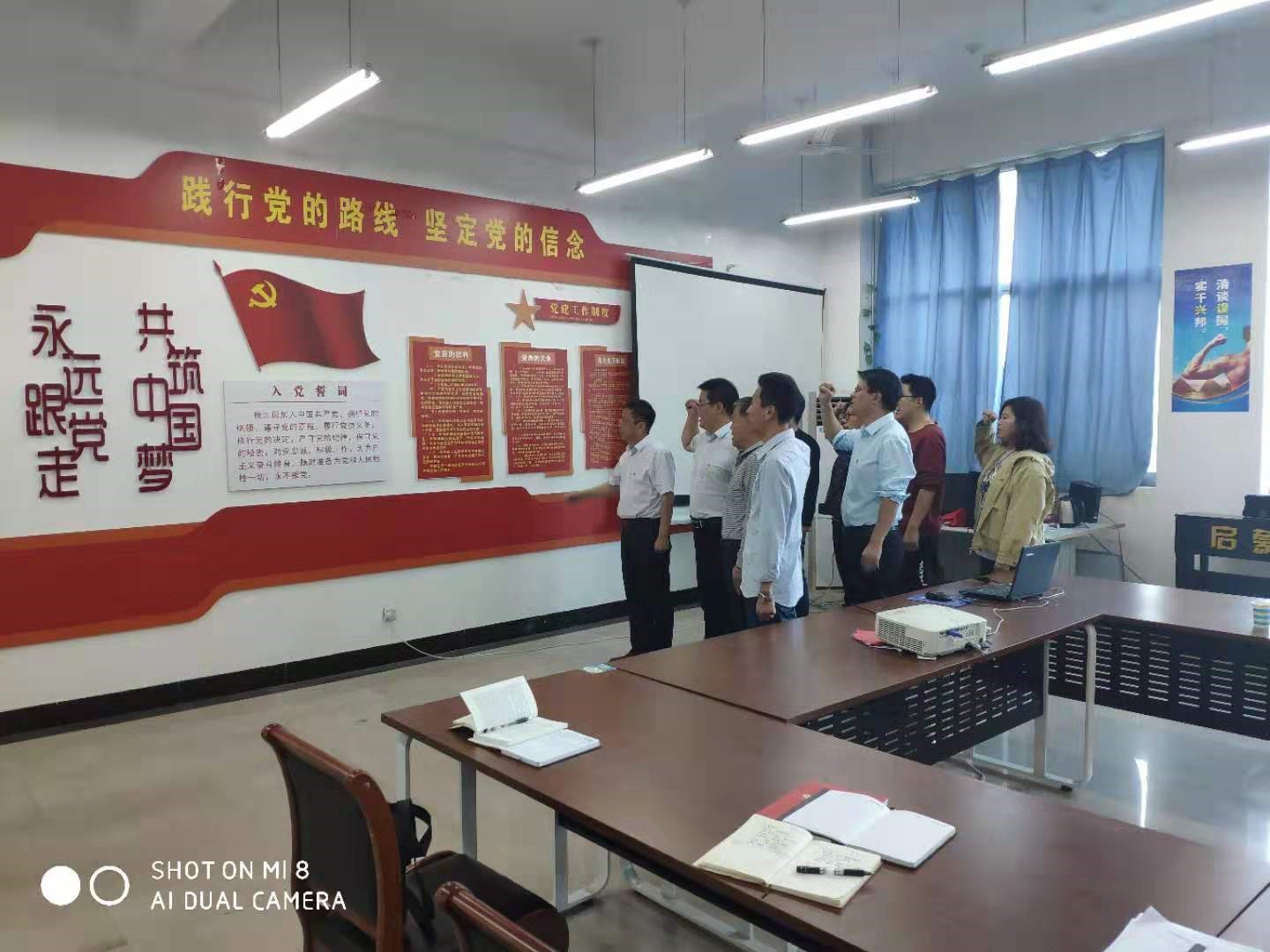 会议开始之前,张国臣同志带领全体参会党员重温了入党誓词,铭记初心使命,更加坚定对马克思主义的信仰和社会主义的信念。