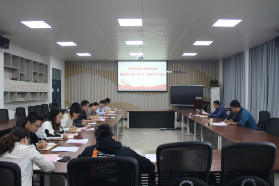 9月26日下午,车辆学院党委在教学4号楼211召开理论学习中心组(扩大)会议,校党委学工部部长李士晓、校党委学工部学生管理科科长王智超到会巡听督导,中心组成员、全体科级干部参加会议。会议由学院党委书记魏然主持。