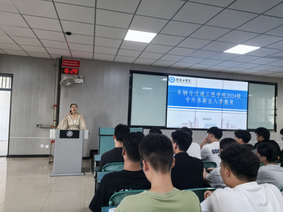 8月29日下午,我院党委书记魏然在教1楼A204为我院2024级专升本新生讲授“开学第一课”。会议由学院党委副书记刘庆主持。