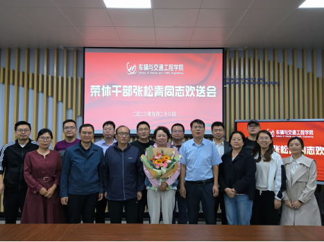 9月28日下午,一场温馨的荣休欢送会在车辆学院教4号楼211会议室举行,大家齐聚一堂,欢送张松青同志光荣退休。院长侯锁军出席并讲话,院党委副书记、分会主席刘庆主持,院中心组成员、教师代表参加了欢送会。