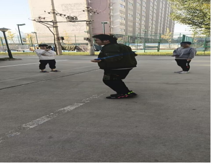 金秋佳节,操场上⼀⽚欢腾的景象,只见⼀根根彩绳飞舞,⼀个个选⼿龙腾虎跃。这次跳绳⽐赛凝聚了同学们的热情,丰富了同学们的课余⽣活,增进同学之间的默契和团结合作的能⼒,让同学们深刻体会到集体荣誉,更让同学们在运动中体会到了快乐。“摇绳练臂⼒,跳绳练腿⼒,跳摇配合练脑⼒”,这是跳绳运动的主要健⾝功效。这次比赛也在欢声笑语的完美结束。