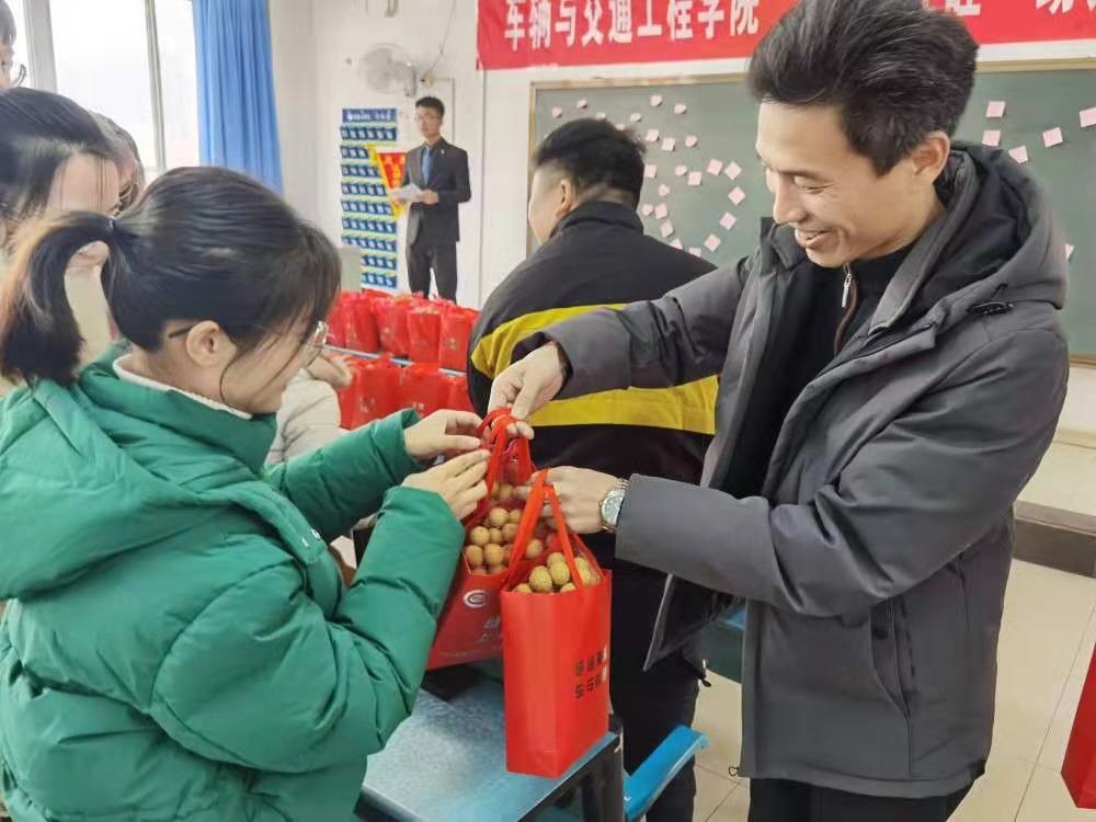 张坤为18级学生代表分发橙子