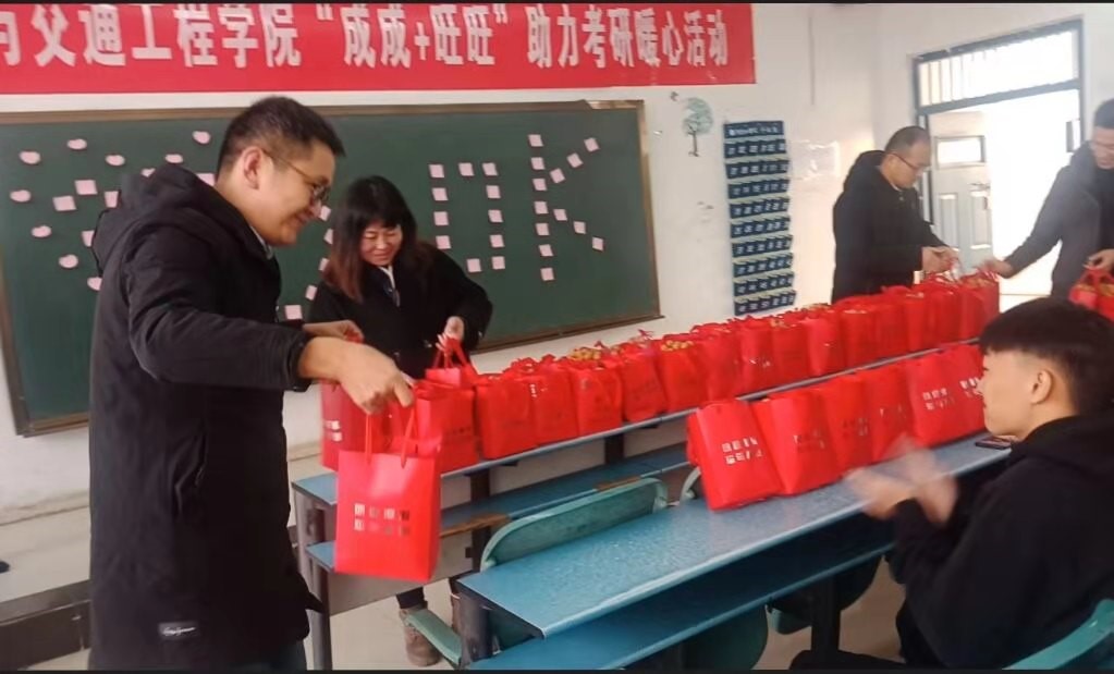 老师们为学生分发考研加油包