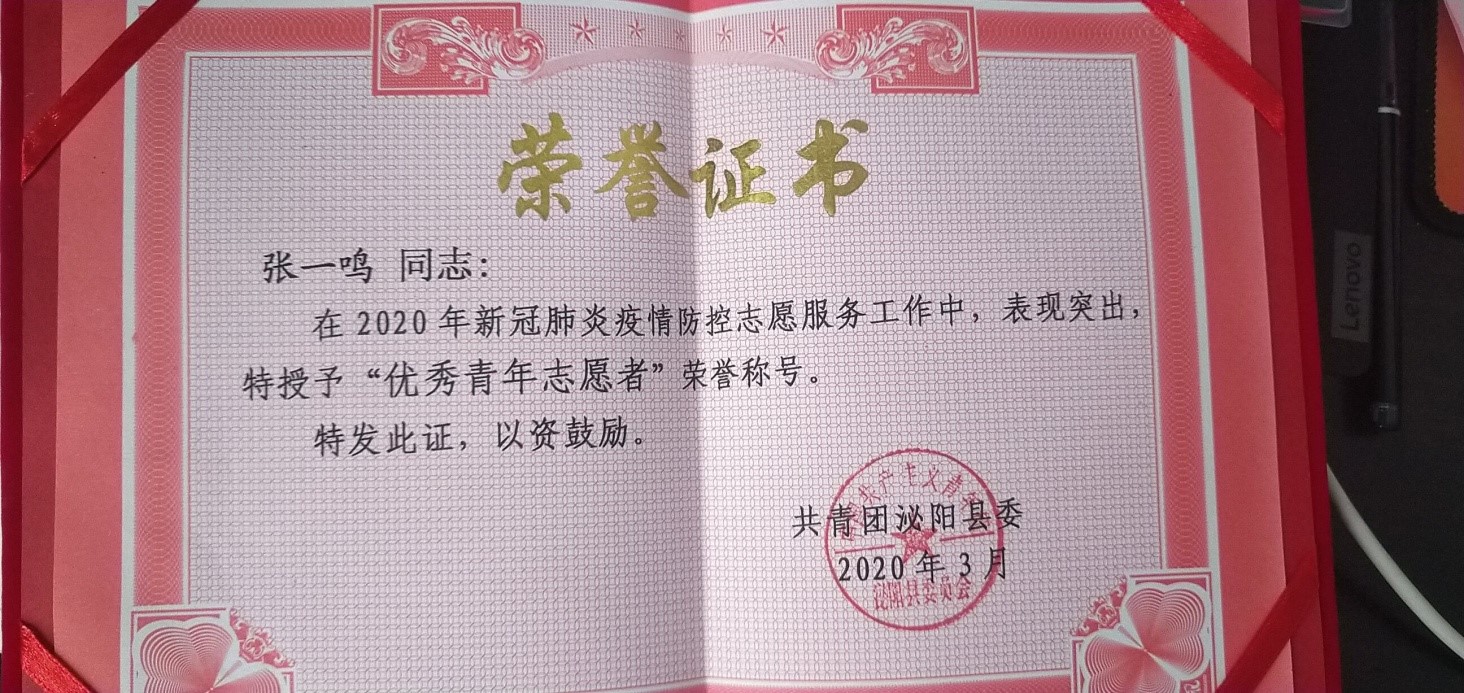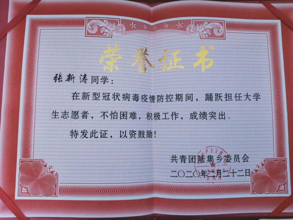 张一鸣说:“在我彷徨无助之时,是学习和社会向我伸出了援手,为我送来了希望。我一直心存感恩,希望在学习之余,能尽自己的微薄之力回馈社会。”张一鸣和张新涛同学在校期间积极参加学校、社团组织的活动,以此来锻炼、提升自己的能力。同时还经常参加学校、班级组织的志愿服务活动,为社会献出自己的绵薄之力。