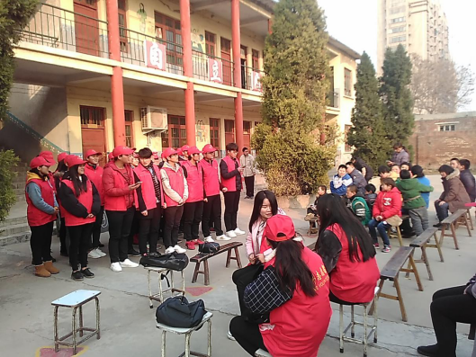 12月10号中午,汽车系与外语系的志愿者们乘坐公交车前往新乡市培智中心学校,到达学校门口时校长爷爷已经等待多时,和孩子们热情的欢迎志愿者们的到来,进入学校就能看到简单的欢迎场会‘奉献铸师魂,爱心驻庠院’。在欢迎会上由那些儿童们亲自主持大会,先由志愿者代表发言,在由校长爷爷讲话,紧接着孩子们和志愿者分别表演了节目,最后志愿者们和儿童们在游戏与欢笑声中结束了此次活动。