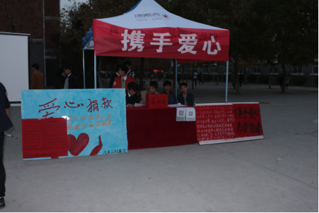 携手爱心,为爱传递。2016年11月15日至18日,在我校文苑餐厅门前,全校师生为范凯旋同学进行募捐活动,大家纷纷慷慨解囊、积极捐款,谱写了一曲爱的乐章。在15日晚上六点三十分,举行了募捐演出活动。