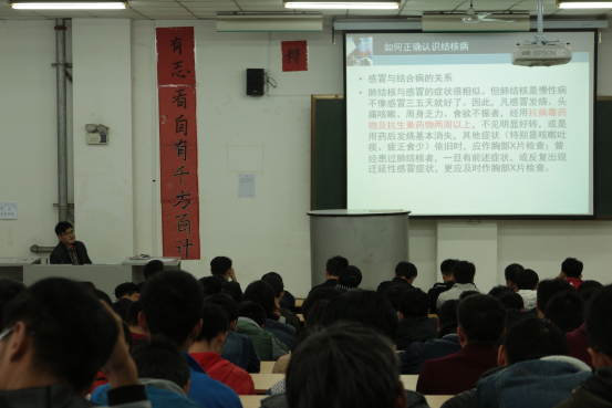 此次讲座包含结核病,艾滋病的传染方式以及染病预召和染病的临床表现。讲师主要讲述了这类疾病的传染方式和染病前期的症状。在讲座中,讲师讲解了有关结核病和艾滋病的发病概况、结核病和艾滋病的定义特征、传播途径等相关知识和各种防治办法以及平时应注意的各种个人卫生习惯,并对如何就医,到哪里就医等问题作了详细的说明。同时大力提倡良好的生活习惯,不随地吐痰,经常开窗通风,保持室内空气新鲜,适当的户外活动和体育锻炼,增强体质,提高抵抗力。讲解过程中与同学们互动,而且让同学们看了部分病人的图片,使同学们对此类疾病的关注度极大提升。讲师用数据向同学们说明此类疾病传染性大,危害性大,同学们纷纷表示将会严肃对待此类疾病。