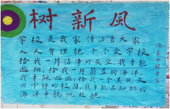 在整个文明礼仪活动中, “争当文明礼仪之星”一直贯穿始终。“文明礼仪之星”的争当,必须是通过自荐、班级核实、系部认定三个程序。通过这个程序,当选“文明礼仪之星”,同时也自然成为一名“文明礼仪监督员”,监督其他同学在学习、生活中的表现,教育不文明行为,让不文明行为在班内无处藏身。维护文明的班级环境。通过一系列文明礼仪教育活动的开展,各班级内兴起了文明之风,同学们互相关心,监督,集体荣誉感普遍增强。(汽车工程系 图/文)