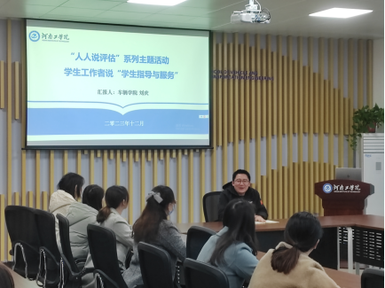 为进一步深入开展迎评促建工作,熟悉本科评估工作具体内容,根据《河南工学院本科教学工作合格评估“人人说评估”系列主题活动实施方案》要求,12月8日上午,车辆学院学生工作人员开展“学生指导与服务”人人说活动。院党委副书记刘庆主持会议,全体辅导员、班主任参加了活动。