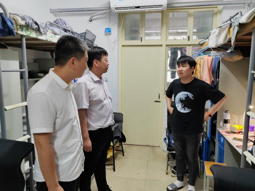 为准确摸排学生情况,切实为学生办实事、解难题,10月13日下午,车辆与交通工程学院副院长赵向阳、刘刚及值班辅导员分批次走访学生宿舍,开展宿舍安全检查,及时发现风险隐患。