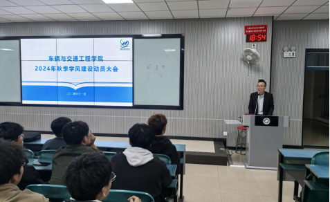 为了进一步加强学风建设,提升教育教学质量,车辆与交通工程学院于2024年11月5日晚在教学一号楼C208教室开展2024年秋季学风建设动员大会。本次会议由学院党委副书记刘庆主持,宋海生博士主讲,教师代表及2024级本科生代表参加本次会议。