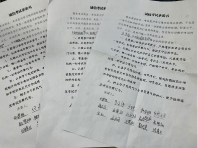 为营造积极向上的考试环境,培养我院学子自立自律、勤奋好学的品质,塑造高尚的道德情操,车辆学院在考前以班级为单位,积极组织学生们深入学习并郑重签署《诚信考试承诺书》,引导学生们树立坚定的诚信意识和契约精神,勇于承诺、敢于践诺,以积极向上的精神风貌迎接期末考试的挑战,共同营造一个公平、公正、诚信的考试氛围。
