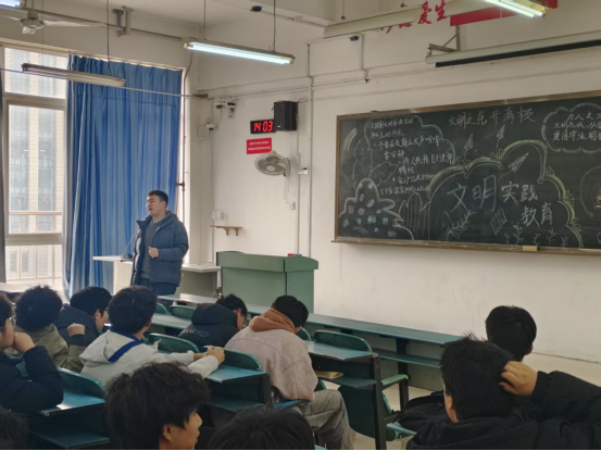 2025年3月6日下午14:30,车辆学院在各班责任教师教室组织召开“践行文明新风尚争做时代新青年”主题教育主题班会。2024级全体学生参加,活动由各班班主任主持。