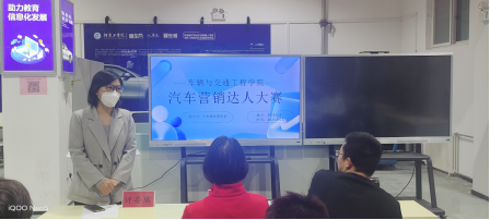 为提供一个让车辆学子施展营销才能和领略营销魅力的舞台,5月21日晚六点,车辆与交通工程学院在教学四号楼103实验室举办了“汽车达人大赛——营销达人”大赛。院党委副书记刘庆、汽车服务教研室主任温永美、新能源教研室教师闫君杰出席大赛并担任评委。