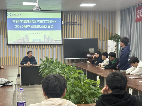 院长陈新亚、副书记刘庆针对车辆工程专业从往届毕业生的就业情况切入,对当下面临的就业形势进行了分析,并鼓励同学们脚踏实地,确定就业目标,主动出击。